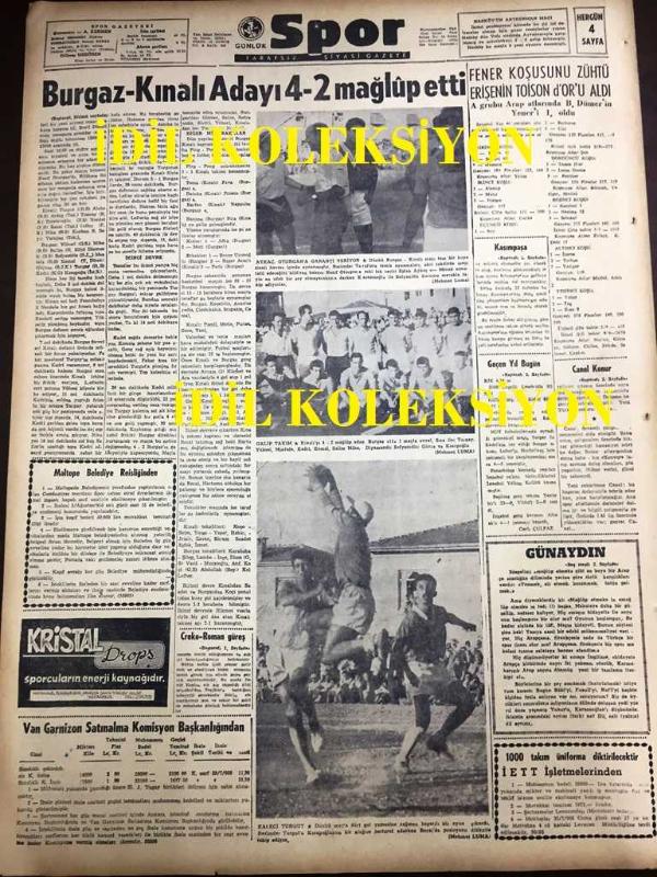 GÜNLÜK SPOR GAZETESİ - 21 TEMMUZ 1958 - DÜNYA GREKO - ROMEN GÜREŞ ŞAMPİYONASI TÜRKİYE, RUSYA - T. TEZOL MODA'DA - NECDET APAK SİGORTACILIK - KASIMPAŞA - TURGAY ŞEREN VE KADRİ - FENERBAHÇE İSTİŞARE HEYETİ - BURGAZ 4 - 2 KINALI - MEHMET LUMA - CHIRLEY BLOMER - HASAN PAŞA FIRINI LALELİ - AT YARIŞLARI, FENER KOŞUSUNU ZÜHTÜ ERİŞEN'İN TOİSON D'OR'U KAZANDI - KRİSTAL DROPS REKLAMI adlı eser, Kitap > Süreli Yayınlar > Gazeteler > Türkiye > Genel > Günlük kategorisinde İkinci El olarak satıştadır.