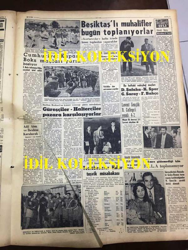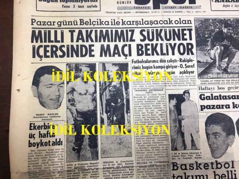 GÜNLÜK SPOR GAZETESİ - 24 EKİM 1958 - (23 YAZILI ANCAK 24 EKİM SAYISIDIR) - MİLLİ TAKIMIMIZ PAZAR GÜNÜ BELÇİKA İLE KARŞILAŞACAK - EKERBİÇER ÜÇ HAFTA BOYKOT - ÇEPÇEVRE VATAN İSTANBUL - GALATASARA VE BEŞİKTAŞ PAZARA KARŞILAŞIYORLAR - BEŞİKTAŞLİ MUHALİFLER BUGÜN TOPLANIYORLAR - HAMİT KAPLAN - ADİL ATAN VE İ. KARABACAK AMERİKA'YA GİDİYORLAR MI? - BÜLENT EKEN GALATASARAY ANTRENÖRÜ - SİNEMA VE TİYATRO SAYFASI - OSMAN A. KERMEN - CAVLI ÇULFAZ - CUMHURİYET KUPASI BOKS MAÇLARI YARIN - ALİ BOZYAYLA, DİLAVER UZGÖREN, DİLAVER ÇORBACIOĞLU, O. A. KERMEN tarafından kaleme alınmıştır. GÜNLÜK SPOR GAZETESİ - 24 EKİM 1958 - (23 YAZILI ANCAK 24 EKİM SAYISIDIR) - MİLLİ TAKIMIMIZ PAZAR GÜNÜ BELÇİKA İLE KARŞILAŞACAK - EKERBİÇER ÜÇ HAFTA BOYKOT - ÇEPÇEVRE VATAN İSTANBUL - GALATASARA VE BEŞİKTAŞ PAZARA KARŞILAŞIYORLAR - BEŞİKTAŞLİ MUHALİFLER BUGÜN TOPLANIYORLAR - HAMİT KAPLAN - ADİL ATAN VE İ. KARABACAK AMERİKA'YA GİDİYORLAR MI? - BÜLENT EKEN GALATASARAY ANTRENÖRÜ - SİNEMA VE TİYATRO SAYFASI - OSMAN A. KERMEN - CAVLI ÇULFAZ - CUMHURİYET KUPASI BOKS MAÇLARI YARIN - ALİ BOZYAYLA adlı eser Türkçe dilindedir.