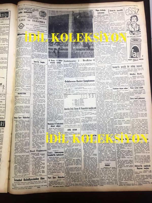 GÜNLÜK SPOR GAZETESİ - 25 NİSAN 1957 - GALATASARAY 2 - 0 BEŞİKTAŞ - NECMİ TANYOLAÇ - REAL MADRİD, MANCHESTER UNITED MAÇI - AMERİKA ORDU BASKETBOL TAKIMI MİLLİ NAMZETLERİ 64 - 43 MAĞLUP ETTİ - FERDİ SEKBAN İSTİFA ETTİ - ORDULARARASI BASKETBOL ŞAMPOİYONASI - MİMİ İLE MEMO, MORT WALKER, DICK BROWN, MADDOCKS, STEVE CANYON, JED FORAM ÇİZGİ ROMAN - FENERBAHÇENİN TARİHİ - ADİL ATAN - CAROL DAY - ALTAN DİNÇER - APİKOĞLU SUCUĞU REKLAMI - ATİLLA KARSAN - ROBER KOHEN - CHARLES HUMEZ, BOKS - DUILIO LOI - LALE VE ELHAMRA, LALE SİNEMASI, ÇÖL ASLANI FİLMİ - FAY REKLAMI - SHELLEY WINTERS adlı eser, Kitap > Süreli Yayınlar > Gazeteler > Türkiye > Genel > Günlük kategorisinde İkinci El olarak satıştadır.