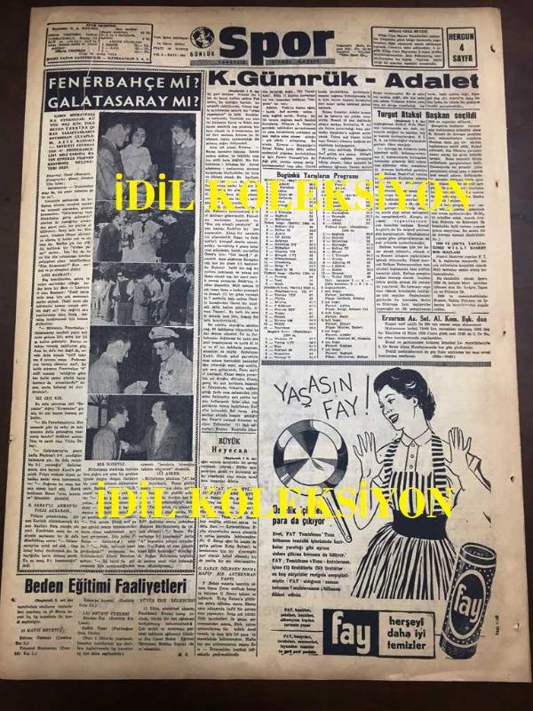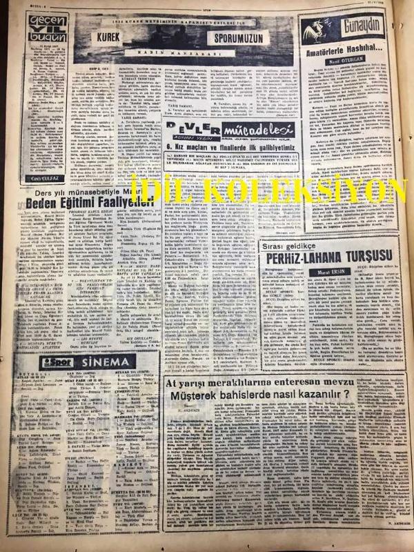 GÜNLÜK SPOR GAZETESİ - 27 EYLÜL 1958 - KADRİ AYTAÇ'A GÖRE GALATASARAY FENERBAHÇE MAÇI - KARAGÜMRÜK ADALET'LE BERABERE KALDI 0-0 - AYDOĞAN BECİT - TURGUT ATAKOL BAŞKAN SEÇİLDİ - BERLİN KARMASI ANKARA'DA - AYDOĞAN BECİT - GÜNGÖR ERDAL - SİNEMA, FİLM SAYFASI - ÇAVLI ÇULFAZ - MURAT ERSİN - NAZİF OTURGAN - TÜRKİYE PİRAT ŞAMPİYONASI BUGÜN BAŞLIYOR - FAY TEMİZLEYİCİ REKLAMI, NECİP AKAR, DİLAVER UZGÖREN, DİLAVER ÇORBACIOĞLU, O. A. KERMEN tarafından kaleme alınmıştır. GÜNLÜK SPOR GAZETESİ - 27 EYLÜL 1958 - KADRİ AYTAÇ'A GÖRE GALATASARAY FENERBAHÇE MAÇI - KARAGÜMRÜK ADALET'LE BERABERE KALDI 0-0 - AYDOĞAN BECİT - TURGUT ATAKOL BAŞKAN SEÇİLDİ - BERLİN KARMASI ANKARA'DA - AYDOĞAN BECİT - GÜNGÖR ERDAL - SİNEMA, FİLM SAYFASI - ÇAVLI ÇULFAZ - MURAT ERSİN - NAZİF OTURGAN - TÜRKİYE PİRAT ŞAMPİYONASI BUGÜN BAŞLIYOR - FAY TEMİZLEYİCİ REKLAMI, NECİP AKAR adlı eser Türkçe dilindedir.