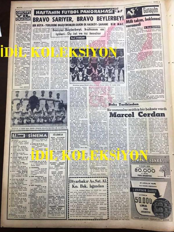 GÜNLÜK SPOR GAZETESİ - 29 EKİM 1958 - CUMHURİYETİMİZİN 35. YILI KUTLU OLSUN - MİLLİ TAKIM ROMANYA'DA - BEŞİKTAŞLI MUHALİFLERİN BASIN TOPLANTISI- REAL MADRİD, BARCELONA KARŞISINDA EZİLDİ, 4 - 0 - KOPA, RIAL, DI STEFANO - PUŞKAS, GENTLO - RAHMİ TURAN - M. REŞİD BAYBURD - SİNEMA VE TİYATRO SAYFASI - OSMANLI BANKASI REKLAMI - CAVLI ÇULFAZ - SEMİN TENGİZ - SELMA HASSAN - MUVAKKAR EKREM TALU - HAMİT KAPLAN - VEFASPOR - SPARTAK - GARNİZON, SARIYER'İ 3-1 YENDİ - ŞEREF KÖYLÜBAY, DİLAVER UZGÖREN, DİLAVER ÇORBACIOĞLU, O. A. KERMEN tarafından kaleme alınmıştır. GÜNLÜK SPOR GAZETESİ - 29 EKİM 1958 - CUMHURİYETİMİZİN 35. YILI KUTLU OLSUN - MİLLİ TAKIM ROMANYA'DA - BEŞİKTAŞLI MUHALİFLERİN BASIN TOPLANTISI- REAL MADRİD, BARCELONA KARŞISINDA EZİLDİ, 4 - 0 - KOPA, RIAL, DI STEFANO - PUŞKAS, GENTLO - RAHMİ TURAN - M. REŞİD BAYBURD - SİNEMA VE TİYATRO SAYFASI - OSMANLI BANKASI REKLAMI - CAVLI ÇULFAZ - SEMİN TENGİZ - SELMA HASSAN - MUVAKKAR EKREM TALU - HAMİT KAPLAN - VEFASPOR - SPARTAK - GARNİZON, SARIYER'İ 3-1 YENDİ - ŞEREF KÖYLÜBAY adlı eser Türkçe dilindedir.