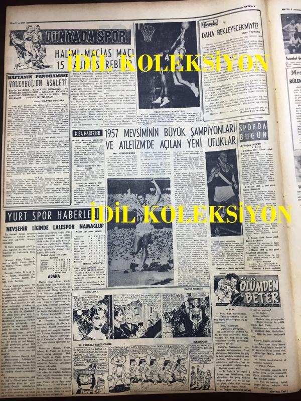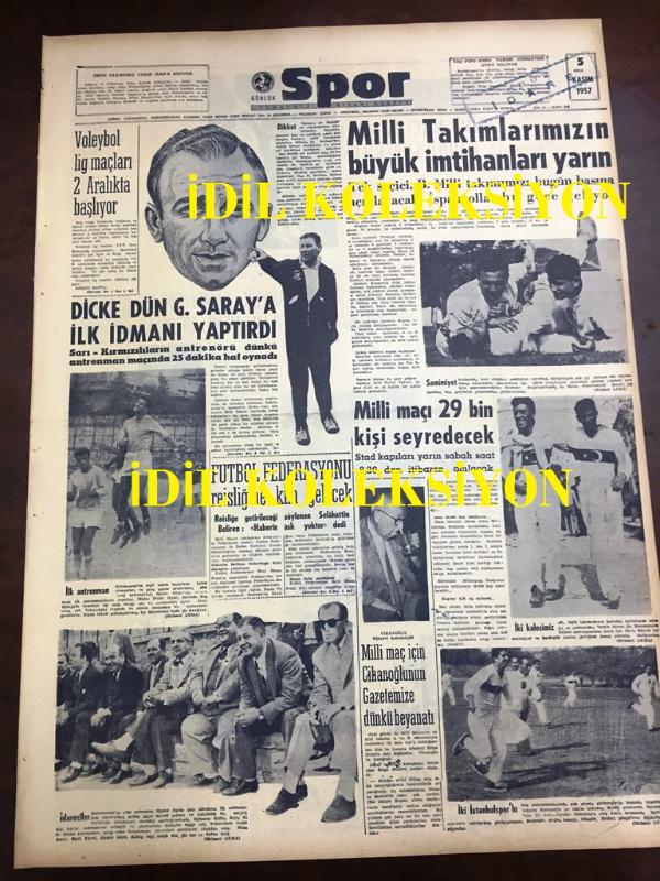 GÜNLÜK SPOR GAZETESİ - 5 KASIM 1957 - DICKE DÜN GALATASARAY'A İLK İDMANI YAPTIRDI - CİHANOĞLU - FUTBOL FEDERASYONU REİSLİĞİ - VOLEYBOL LİG MAÇLARI - NEVŞEHİR LİGİNDE LALESPOR NAMAĞLUP - 1957 ATLETİZM ŞAMPİYONLARI - KIŞ MEVSİMİ ATLETİZM - BÜLENT GÜRBÜZ - İZMİR LİGLERİ - BAKETBOL MİLLİ TAKIMI ROMANYA'DA - KREMLİ PURO TUVALET SABUNU REKLAMI - YAPI VE KREDİ BANKASI - OPON REKLAMI, DİLAVER UZGÖREN, DİLAVER ÇORBACIOĞLU, O. A. KERMEN tarafından kaleme alınmıştır. GÜNLÜK SPOR GAZETESİ - 5 KASIM 1957 - DICKE DÜN GALATASARAY'A İLK İDMANI YAPTIRDI - CİHANOĞLU - FUTBOL FEDERASYONU REİSLİĞİ - VOLEYBOL LİG MAÇLARI - NEVŞEHİR LİGİNDE LALESPOR NAMAĞLUP - 1957 ATLETİZM ŞAMPİYONLARI - KIŞ MEVSİMİ ATLETİZM - BÜLENT GÜRBÜZ - İZMİR LİGLERİ - BAKETBOL MİLLİ TAKIMI ROMANYA'DA - KREMLİ PURO TUVALET SABUNU REKLAMI - YAPI VE KREDİ BANKASI - OPON REKLAMI adlı eser Türkçe dilindedir.