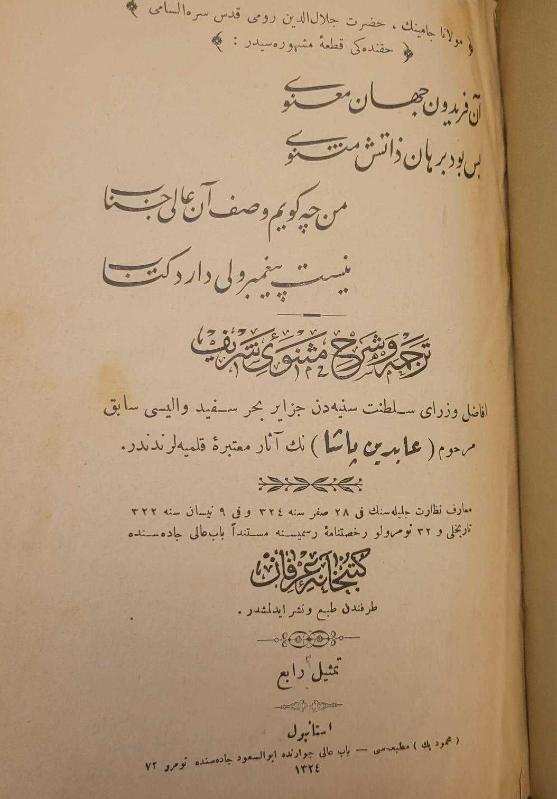 GÜZEL CİLTLİ MESNEVİ ŞERHİ. ORİJİNAL DÖNEM ESERİ. adlı eser Türkçe dilindedir.