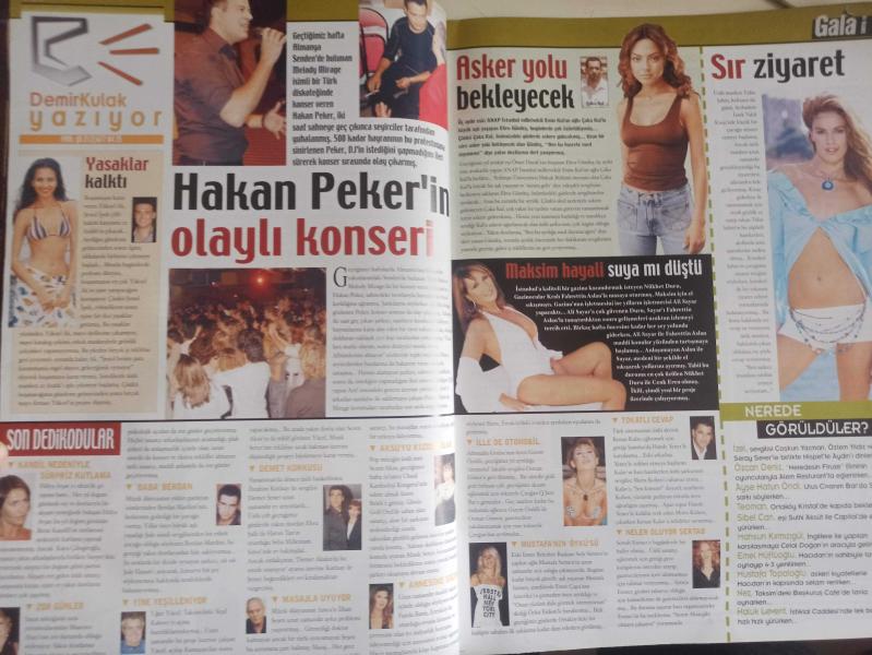 Gala Haftalık Aktüalite Sinema Tiyatro Müzik ve Magazin Dergisi - 19 Ekim 2003 - Zümre - Selin Toktay - Ebru Destan - Şafak Sezer - Arzu Pavlova - Dansöz Tanyeli - Esra Akkaya - Nilüfer Bıyıklı - Nur Sonbahar - Çetin Çiftçioğlu - Hakan Peker - Tülin Şahin - Nükhet Duru - Derin Mermerci - Ralph Tezman - Dilek Yalçınkaya - Cengiz Abazoğlu - Tolga Sezgin - Nurseli İdiz - Nehir Erdoğan - Mustafa Alabora - Heves Ekinci - Gülbin Simitçioğlu - Tuğba Peksayar - Ahmet Mutafçı - Demet Şener - İbrahim Kutluay - Sevda Demirel - Sinan Çetin - Tamer Karadağlı - Çağla Şikel - David Beckham - Özgül Kavruk - Hülya Avşar - Bengü - Zeynep Tunuslu - Nazan Şoray - Dilek Hanif - İpek Tanrıyar - Tuğçe Eyilik - Müşerref Akay - Mustafa Sandal fotoğraf ve haberi - Tam Takım Dergi Yıpranma, sararmalar, kupon kesiği ve yırtılmalar zamana bağlı olarak görülebilir