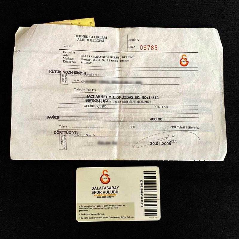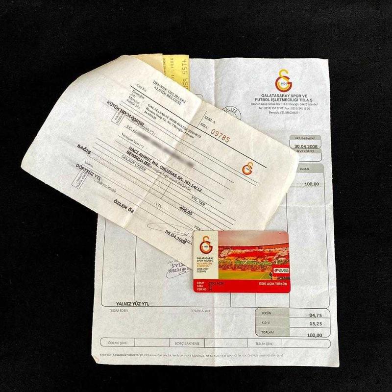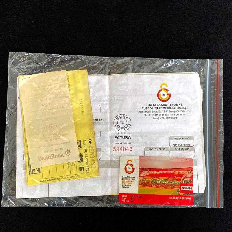 Galatasaray koleksiyonerleri için nadir bir koleksiyonluk set. Set, Galatasaray'ın Nisan 2008'den kalma, meşhur "Eski Açık" tribün kombine kartı ve belgelerinden oluşuyor. Sette GS logolu plastik giriş kartı, Galatasaray Spor Kulübü Derneği belgesi, Galasaray A.Ş. faturası yer alıyor.