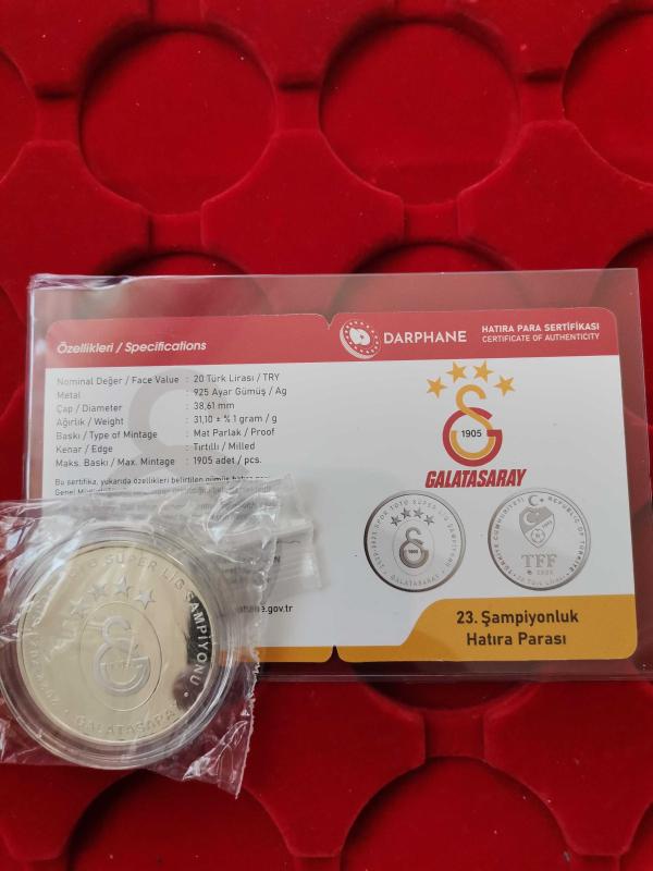 Galatasaray 23. Şampiyonluk GÜMÜŞ hatıra parası. Sertifikalı, Çil.