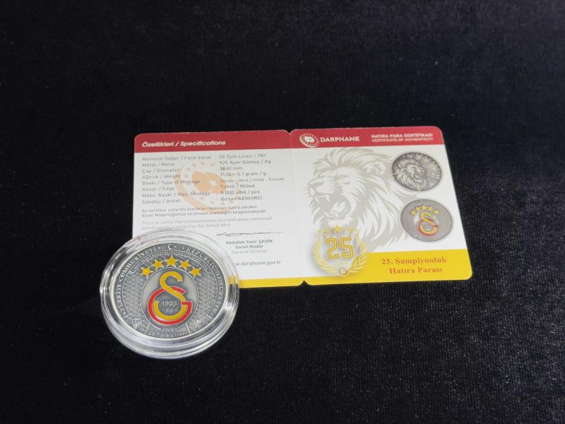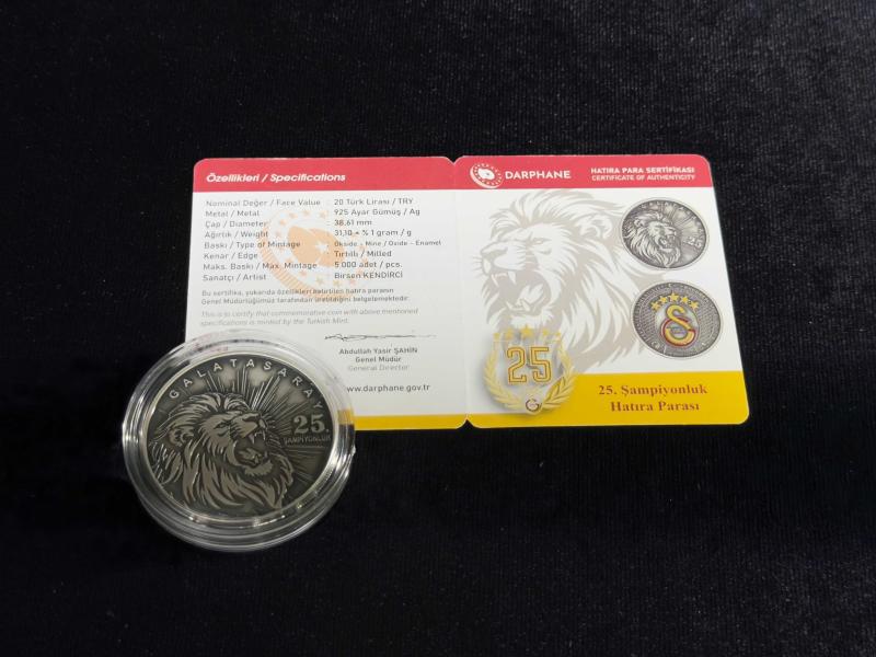 Galatasaray – 25. Şampiyonluk Özel Deri Kutulu Hatıra Para Gümüş/Okside Sikkesi (Darphane, 925 Ayar), 10 gün önce satışa sunulmuştur.
