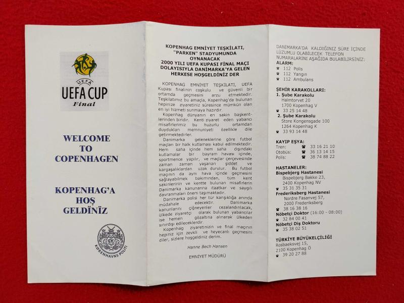 Galatasaray Arsenal - 17 Mayıs 2000 - UEFA Kupası Finali Güvenlik Broşürü, 11 ay önce satışa sunulmuştur.