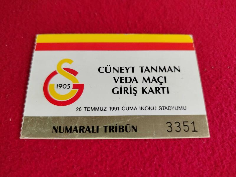 Galatasaray Cüneyt Tanman Jübile Davetiyesi + 26 Temmuz 1991 - İstanbul İnönü Stadı Giriş Bileti + Biyografi, Çizim Karikatür, Zarf - Tam Takım Set, dün satışa sunulmuştur.