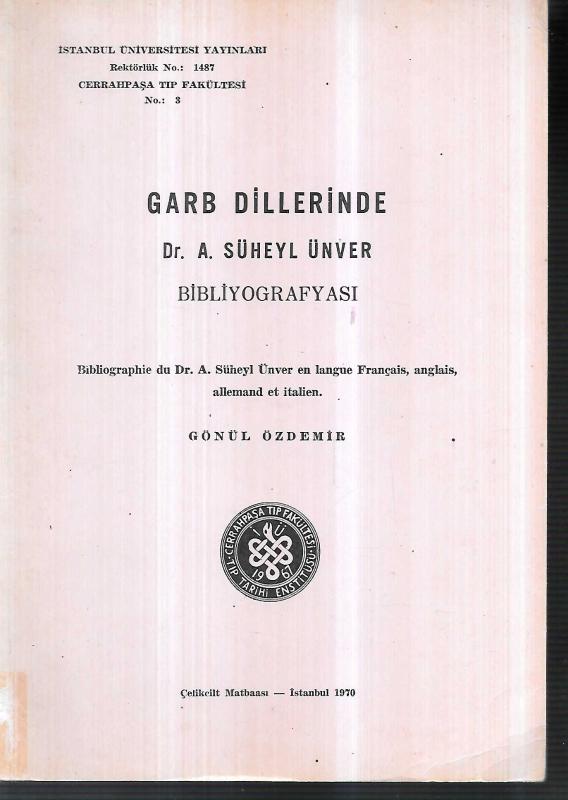 Garb Dillerinde A. Süheyl Ünver Bibliyografyası, Gönül Özdemir tarafından kaleme alınmıştır. Kitap 1970 yılında İstanbul Üniv. tarafından [İstanbul] yayınlanmıştır. Garb Dillerinde A. Süheyl Ünver Bibliyografyası adlı eser Türkçe dilindedir.