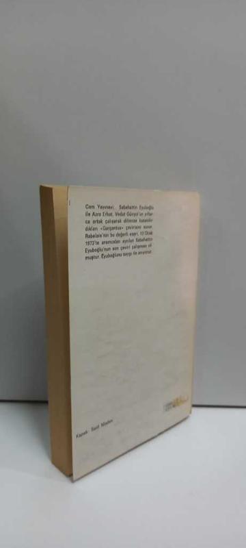 Cem Yayınevi, Sabahattin Eyuboğlu ile Azra Erhat, Vedat Günyol`un yıllarca ortak çalışarak dilimize kazandırdıkları `Gargantua` çevirisini sunar. Rabelais`nin bu değerli eseri, 13 Ocak 1973`te aramızdan ayrılan Sabahattin Eyuboğlu`nun son çeviri çalışması olmuştur. Eyuboğlu`nu saygı ile anıyoruz.