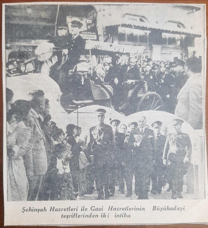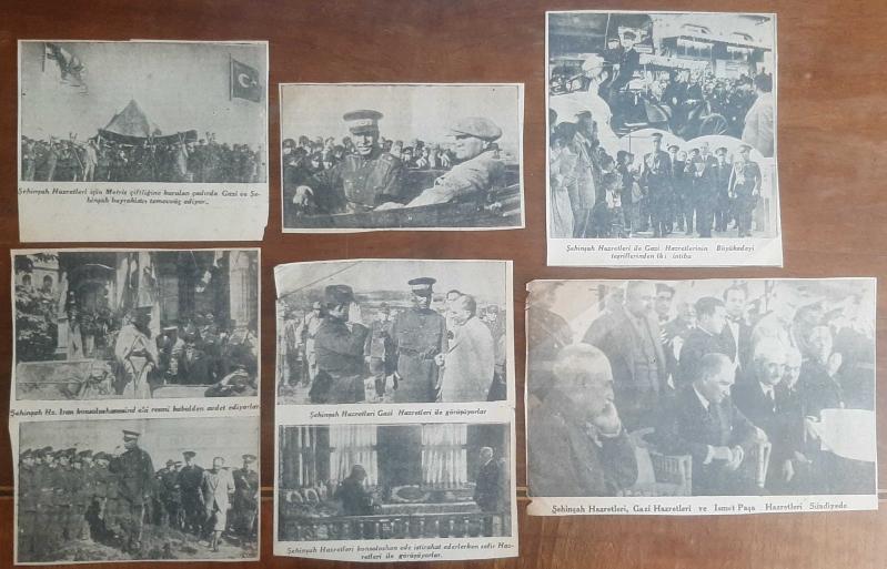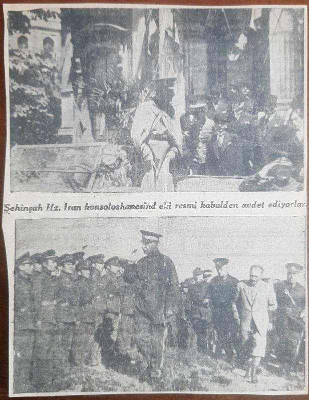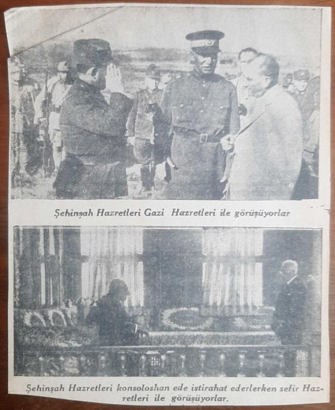 Rıza Pehlevi'nin Türkiye ziyaretinde Atatürk ile birlikte gazetelerde yer alan fotoğrafları.
