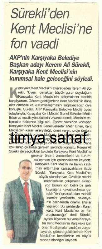 Gazete küpürü Haber Ekspres 13.03.2004 Karşıyaka Kent Meclisi Metin Erten Kerem Ali Sürekli, 1 yıl önce satışa sunulmuştur.