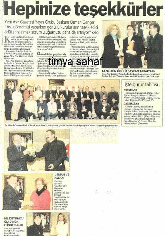 Gazete küpürü Yeni Asır 10.01.2004 Osman Gencer Karşıyaka Kent Meclisi