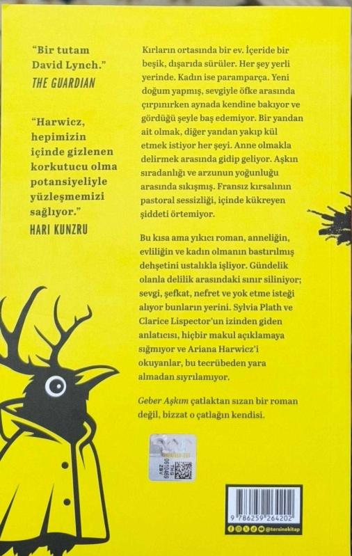 Geber Aşkım, Ariana Harwicz tarafından kaleme alınmıştır. Kitap 2025 yılında Tersine Kitap tarafından [İstanbul] 9789753484374 ISBN kodu ile yayınlanmıştır. 148 sayfadır. Sayfa bilgisi 2. Hamur olarak belirtilmiştir. Geber Aşkım adlı eser Türkçe dilindedir.