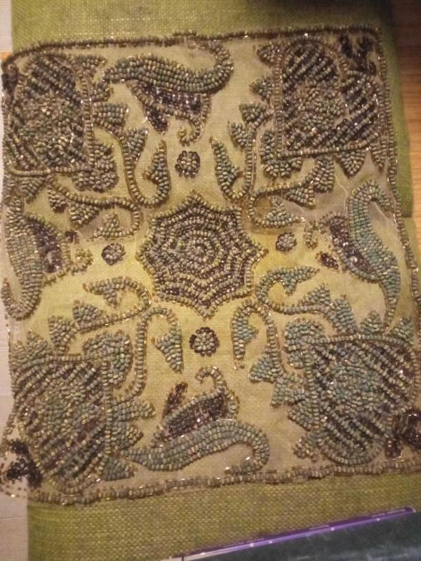 “Geç Osmanlı – Erken Cumhuriyet dönemi, tül üzerine el yapımı cam boncuk nakışı. başlıklı antika/koleksiyon objesi Osmanlı menşe’lidir. 1900-1919 arası dönemine aittir.