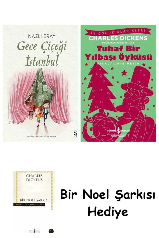Gece Çiçeği İstanbulAldıkları biletlerle masal dünyasına giren Nazlı ve Osman’ı olağanüstü serüvenler beklemektedir! Roman kahramanı gibi arzıendam eden İstanbul, şehrin semtlerini gölgesiyle karartmış bir dev, “Hayatım roman,” diyerek yazar olup şöhrete kavuşan bir begonya, büyüyle mavi bir el sabununa çevrilen prenses, pasta evde yaşayan Kukuman Kadın, yanlışlıkla kanaryaya dönüşen Nazlı’yla Osman, kafes arkadaşları Hezarfen Ahmet Çelebi ve daha niceleri…Kadın biletimi kesti.; “24 saat için geçerli,” dedi.; “Klasik masallar.; Eskiden büyükanneden dinlenen masalları kapsıyor bu bilet.; ”“Başka ne var ki?” diye hayretle sordum.; Kadın bir kaşını yukarıya kaldırıp bana baktı.; “Her şey var,” dedi.; “Uzay, filmleştirilmiş masallar, güncel şeyler.; Ama pahalı.; Hem sen daha küçüksün,” dedi bana bakarak.; Biletimi kapıp pembe kadife perdeye kadar gittim.; “Soldan.; Sol taraftan gir,” diye seslendi arkamdan.; Sol taraftan, pembe kadife perdenin arasından süzüldüm.; + Tuhaf Bir Yılbaşı Öyküsü – Kısaltılmış Metin: Ebenezer cimri, huysuz ve bencil bir adamdı.; Kimseyle arkadaşlık etmez, eğlencelere katılmaz, işinden başka bir şey düşünmezdi.; Çok parası olduğu halde, kimseye yardım etmezdi.; Dünya üzerinde, iyi kalpli yeğeninden başka seveni yoktu ama Ebenezer bunu da dert etmezdi.; Hiç kimseye ihtiyacı olmadığını düşünürdü.; Ancak Yılbaşı öncesi kapısını çalan bir ziyaretçi her şeyi değiştirdi.; Aslında ziyaretçi kapıyı çalmamış, doğrudan içinden geçmişti.; Bu garip ziyaretçinin, eski arkadaşına anlatacak çok önemli şeyleri vardı.; + Bir Noel Şarkısı: Charles Dickens (1812-1870): Viktorya Dönemi İngilteresi'nin en önemli romancısı kabul edilen Dickens orta sınıf bir ailenin çocuğuydu.; On iki yaşındayken ailesinin dara düşmesi sonucu bir fabrikada çalışmaya başladı ve romanlarında büyük bir isabetle aktardığı işçi sınıfının hayatını gözlemleme fırsatını elde etti.; Dickens'ın belki de en popüler eseri Bir Noel Şarkısı 1843 yılının Noel'inden hemen önce yayımlanmış, ilk baskısı günler içinde tükenmiştir.; Noel'in insani yönüne vurgu yaparak bu bayramın kutlanışını değiştirmiş, Viktorya Dönemi'nde Noel'in canlanmasına katkıda bulunmuştur ve İngiliz toplumunu öyle çok etkilemiştir ki kahramanının soyadı 'pinti' anlamında sözlüklere girmiştir.; Cimri, nemrut Ebenezer Scrooge'un, ona geçmişini, bugününü ve geleceğini gösteren üç hayaletin yardımıyla gerçekleşen büyük değişimini anlatan bu modern masalın sıcacık ışığı, sözünü saklamayan bir toplumsal eleştirmen olan Dickens'ın içinde yaşadığı gerçek dünyaya yorumunu da aydınlatır.; Bir Noel Şarkısı günümüze dek birçok dile çevrilmiş, defalarca sahneye, sinema ve televizyona uyarlanmıştır.; Siparişleriniz, kargo sürecinde zarar görmemesi için dikkatle paketlenerek gönderilir.; Dilerseniz hediye paketi seçeneğinden faydalanabilirsiniz.; Ayrıca sevdiklerinize özel bir sürpriz yapmak isteyen müşterilerimiz için kişiye özel hediye notu hazırlanabilmektedir.; Hediye paketi ve not taleplerinizi sipariş esnasında belirtmeniz yeterlidir.; Ürün görsellerinde ve açıklama kısmında belirtilen tüm ürünler eksiksiz ve belirtilen şekilde gönderilmektedir.; Müşteri memnuniyeti önceliğimizdir.; Ürünle ilgili her türlü soru, talep ve destek için Ürün Sorusu bölümünden bizimle iletişime geçebilirsiniz.