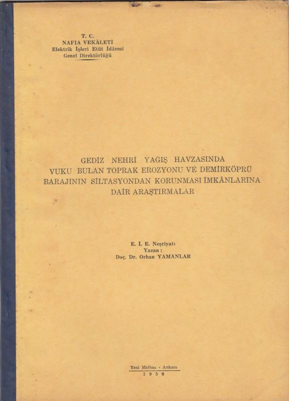 Gediz Nehri Yağış Havzasında Vuku Bulan Toprak Erozyonu ve Demirköprü Barajının Siltasyondan Korunması İmkanlarına Dair Araştırmalar, Orhan Yamanlar tarafından kaleme alınmıştır. Kitap Yeni Matbaa tarafından [Ankara] yayınlanmıştır. 19 sayfadır. Gediz Nehri Yağış Havzasında Vuku Bulan Toprak Erozyonu ve Demirköprü Barajının Siltasyondan Korunması İmkanlarına Dair Araştırmalar adlı eser Türkçe dilindedir.