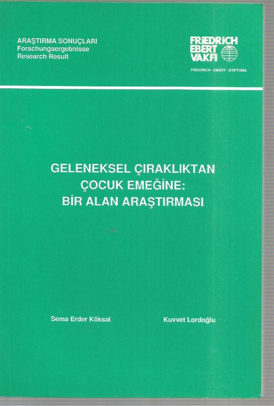 Geleneksel Çıraklıktan Çocuk Emeğine : Bir Alan Araştırması, Sema Erder Köksal, Kuvvet Lordoğlu tarafından kaleme alınmıştır. Kitap 1993 yılında Friedrich Ebert Vakfı tarafından [İstanbul] yayınlanmıştır. 223 sayfadır. Geleneksel Çıraklıktan Çocuk Emeğine : Bir Alan Araştırması adlı eser Türkçe dilindedir.