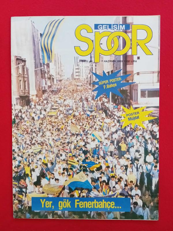 Gelişim Spor Futbol Dergisi - Sayı: 44 - 7 Haziran 1989 - Kapak: Şampiyon Fenerbahçe - Poster: Fenerbahçe 38x56 cm, Müjdat Yetkiner - İçerisinde 4 Adet Sporcu Kartı Vardır