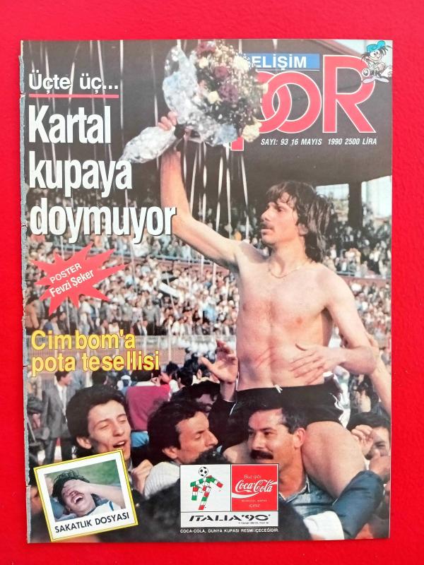 Gelişim Spor Futbol Dergisi - Sayı: 93 - 16 Mayıs 1990 - Kapak: Şampiyon Beşiktaş - Poster: Güreş, Fevzi Şeker - Ciltten Çıkma - 5. Sayasında 10 cm Kesik Vardır