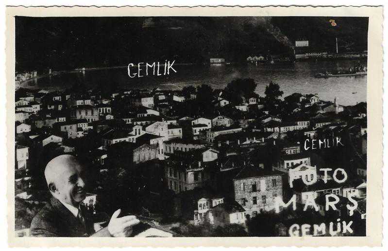 Gemlik manzarası, arka yüzünde yeni yıl tebriki yazılı. Foto Marş.