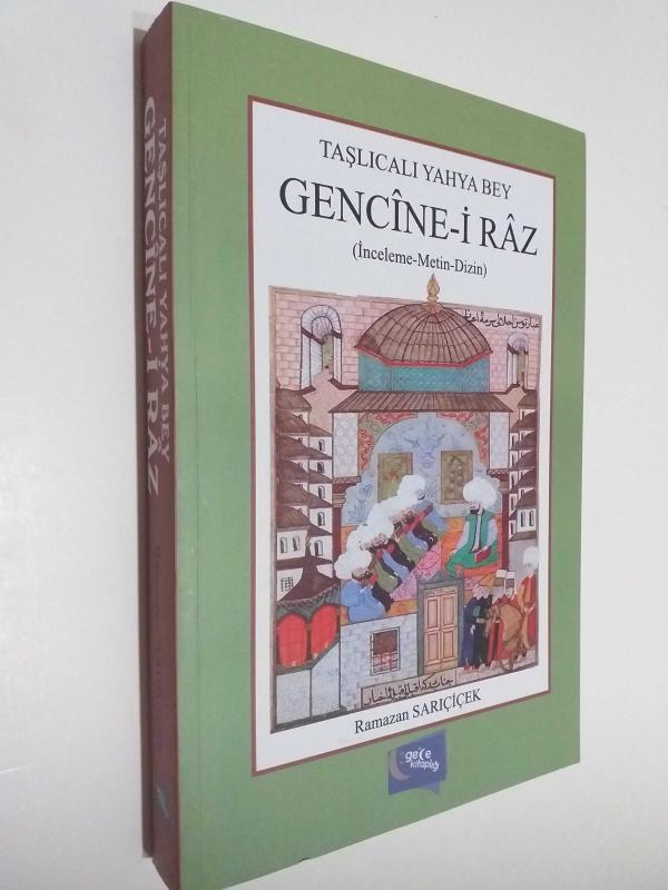 Gencine-i Raz (İnceleme - Metin - Dizin), Taşlıcalı Yahya Bey tarafından kaleme alınmıştır. Eser Ramazan Sarıçiçek editörlüğünde hazırlanmıştır. Kitap Gece Kitaplığı tarafından [Ankara] yayınlanmıştır. 301 sayfadır. Sayfa bilgisi +Tıpkıbasım olarak belirtilmiştir. Gencine-i Raz (İnceleme - Metin - Dizin) adlı eser Türkçe dilindedir.