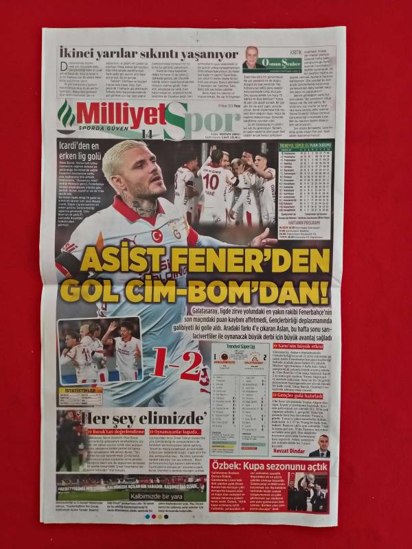 Gençlerbirliği 1-2 Galatasaray, Eurolig Finali Galatasaray Fenerbahçe Kadın Basketbol - 19 Nisan 2026 - Milliyet Gazetesi - Tam Gazete adlı eser, Kitap > Süreli Yayınlar > Gazeteler > Türkiye > Genel > Günlük kategorisinde İkinci El olarak satıştadır.