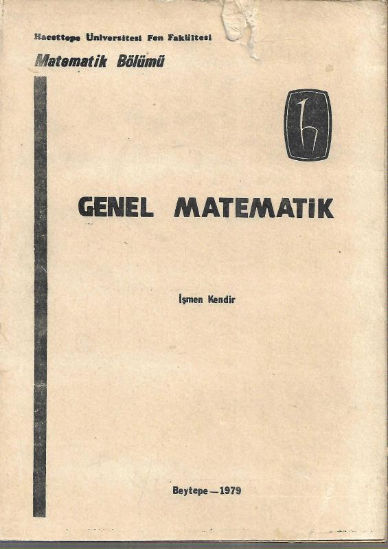 Genel Matematik, İşmen Kendir tarafından kaleme alınmıştır. Kitap 1979 yılında Hacettepe tarafından [Ankara] yayınlanmıştır. 154 sayfadır. Genel Matematik adlı eser Türkçe dilindedir.