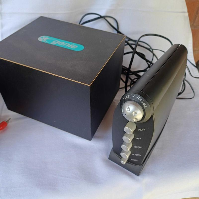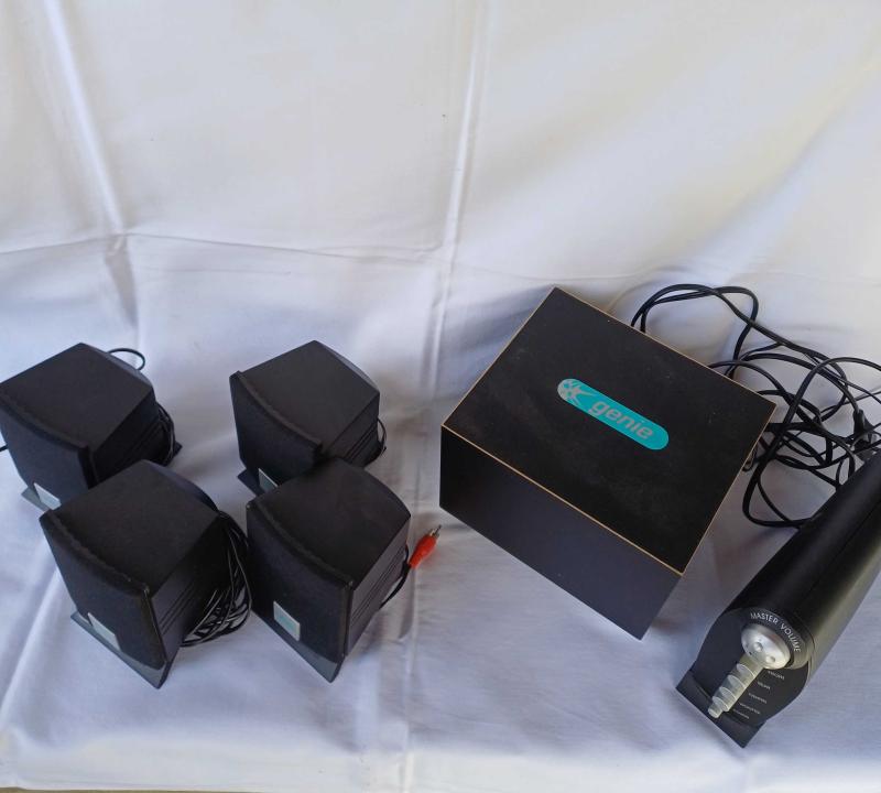 Genie marka ,ithal ses sistemi, 4 adet uydu hoparlör dahil başlıklı antika/koleksiyon objesinin menşei belirtilmemiştir. 2000 ve sonrası dönemine aittir.