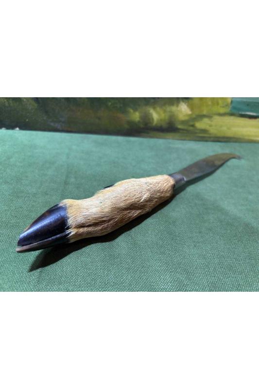 Gerçek Karaca ayağından peynir bıçağı- 29 cm boyunda başlıklı antika/koleksiyon objesinin menşei belirtilmemiştir. Objenin ait olduğu dönem bilinmeketedir.