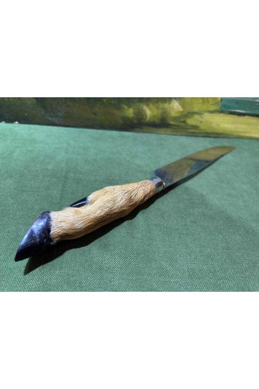 Gerçek Karaca ayağından servis bıçağı bıçak - 33 cm boyunda başlıklı antika/koleksiyon objesinin menşei belirtilmemiştir. Objenin ait olduğu dönem bilinmeketedir.