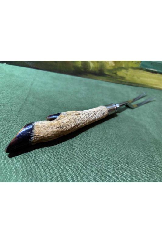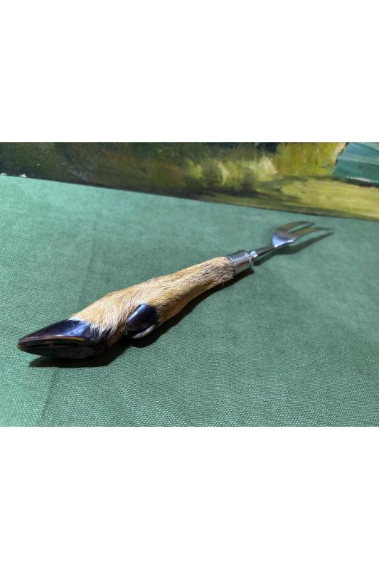 Gerçek Karaca ayağından servis çatalı- 29 cm boyunda başlıklı antika/koleksiyon objesinin menşei belirtilmemiştir. Objenin ait olduğu dönem bilinmeketedir.