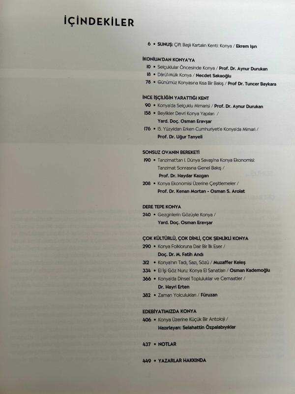 Arka kapaktan: Konya´yı gezmek, Konya´yı görmek, büyük bir kültür mirasına ortak olmak demektir. XII. yüzyılda Endülüs´ten yola çıkan Ibn Arabi ile XIII. yüzyılda Belh´ten hareket eden Mevlana Celaleddin-i Rumi´nin Konya´da buluşmaları, bu kentin kimliğine yepyeni bir çehre kazandırmıştır. Anadolu´nun insan malzemesini bu mutasavıflar şekillendirmiş, kentin uygarlık harcını onlar karmıştır... Gez Dünyayı Gör Konya´yı, geçmişi, bugünü ve geleceğe bakışıyla tam anlamıyla kendine özgü ve dinamik bir görüntü sergileyen Konya´yı tarihi, kültürü, mimarlığı, toplumsal yaşamı ve ekonomisiyle bir bütün olarak ele alıyor. Alanlarında uzmanlaşmış yazarlar, kenti farklı boyutlarıyla inceliyor ve anlatıyorlar. Yalnızca uçsuz bucaksız bir ovayı değil, büyük bir kültür birikimine de adını veren Konya´yı tanımak isteyenler için bir başvuru kaynağı...