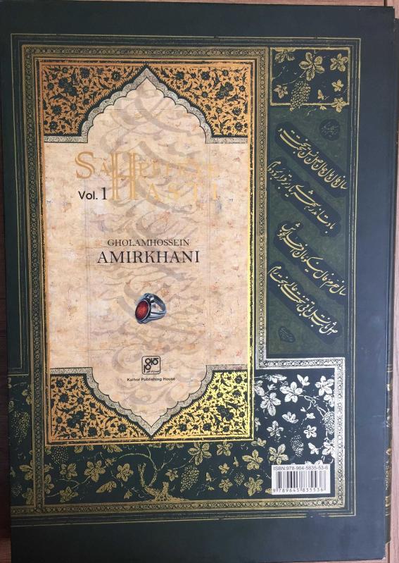 Gholam Hossein Amirkhani / Saheeefe-ye Hasti (Selected Works 1969-2001) Ciltli-Kutulu, Gholam Hossein Amirkhani tarafından kaleme alınmıştır. Eser Gholam Hossein Amirkhani editörlüğünde hazırlanmıştır. Kitap 2011 yılında Kalhor Publishing House, tarafından [Tahran-İran] yayınlanmıştır. Satışta olan kitap, yayınevinin 1. baskısıdır. 186 sayfadır. Sayfa bilgisi 186 olarak belirtilmiştir. Gholam Hossein Amirkhani / Saheeefe-ye Hasti (Selected Works 1969-2001) Ciltli-Kutulu adlı eser Farsça dilindedir. Eserin içeriğinde İngilizce dilinde bölümlere de yer verilmektedir.