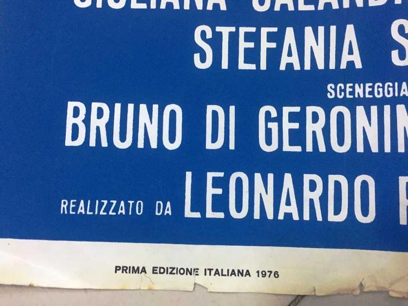 Sattığımız afiş / posterler dönemine ait orijinal ürünlerdir. Fotoğraflarda kondisyonları görebilirsiniz., Kondisyonlar temiz durumdadır. Aksi bir durum olduğunda ilave fotoğraf ve bilgi yer alacaktır. Kondisyon: Fotoğrafta görüldüğü gibi, zamana bağlı bazı yıpranmalardan dolayı küçük çaplı onarımlar yapılmıştır. Genel durumu iyidir. Dönemine ait, 1976 basım çok nadir bir İtalyan sinema afişidir.