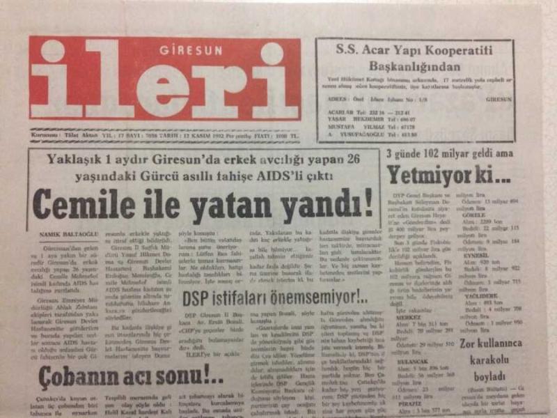 Giresun İleri Gazetesi 12 Kasım 1992 - Cemile İle Yatan Yandı GZ32494, en son 20 gün önce güncellenmiştir.