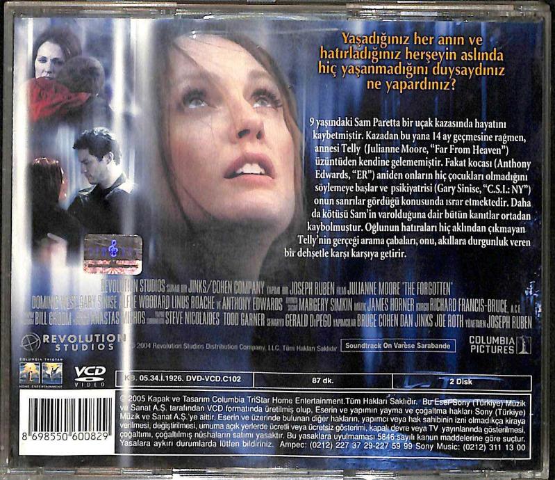 Gizemli Parçalar – The Forgotten (2004) Orijinal VCD Film VCD28944 başlıklı ürün, Efemera, Müzik, Sinema > Sinema, Film, Dizi > VCD > Yabancı VCD kategorisi altında İkinci El olarak satılmaktadır.