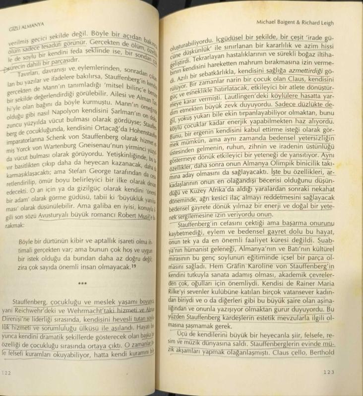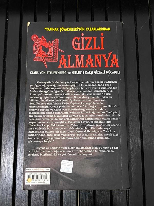 “Tapanak Şövalyeleri” gibi ses getiren çalışmalarıyla tanınan Michael Baigent ve Richard Leigh, bu eserlerinde Nazi Almanyası içinde gelişen gizli direniş hareketlerini mercek altına alıyor. Kitap, özellikle Claus von Stauffenberg’in Hitler’e karşı yürüttüğü suikast girişimi ve bu sürecin arka planını tarihsel, ideolojik ve psikolojik boyutlarıyla ele alır. II. Dünya Savaşı, Nazi dönemi ve gizli örgütlenmeler üzerine ilgi duyan okurlar için dikkat çekici ve akıcı bir araştırma kitabıdır. Kondisyon: Kapakta hafif kullanım ve kenar aşınmaları mevcuttur. İç sayfalarda yer yer kurşun kalemle çizili satırlar bulunmaktadır. Bunun dışında sayfalar okunur durumdadır, eksik ya da kopuk sayfa yoktur. Genel kondisyon orta seviyededir.