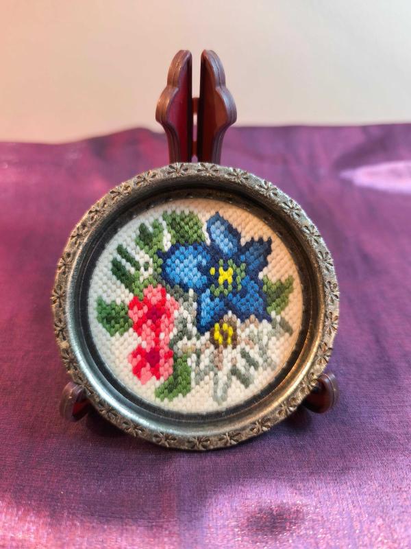 Goblen Metal - Cam İşçilikli Süs. Masa üstü ya da duvar için. El işçiliği örgü üstü cam arka ve kenarlar metal. Çok iyi durumda .