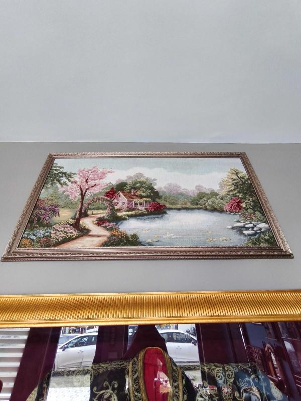 Sıfır çerçevesinde sıfır hata. 100 x 60 cm. Eksiksiz yırtık sökük yoktur. Sıfır ayarında goblen tablo