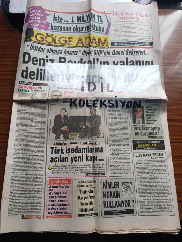 Gölge Adam Gazetesi - Turkish Newspaper - 10-16 Ocak 1989 - komünizm ve irtica iftirası başyazı - iktidar olmaya hazırız diyen SHP'nin Genel sekreteri Deniz Baykal'ın yalanını delilleriyle açıklıyoruz - Afrika'nın elmas diyarı Zaire Türk iş adamlarına açılan yeni kapı - Genç İş adamları Derneği Başkanı Cefi Kamhi'ye göre Türk ekonomisi ne durumda - Fenerbahçe kulübü'nün milyarder başkanı Tahsin Kaya'nın büyük iddiası - SHP Hatay milletvekili Ali Uyar YÖK başarılı görünmek için mi öğrencileri mezun ediyor - Emlak Bankası 2 tam sayfa reklam - İzmir Belediye Başkanı Burhan Özfatura şampiyonluk için tek adayım genç Beşiktaş dedi - tarihte tanınmış masonlar - Rıdvan Dilmen'i Fenerbahçe'den hiç kimse koparamaz - Galatasaray'ın en iyi savunma ödülü sahibi basketçi Tülin Fotoğrafı - Beyoğlu belediye başkanlığına adaylığını koyacak olan Hülya Koçyiğit - Fenerbahçe kaptanı Schumacher'e ödül verilecek - Trabzonspor yarıştan kopmadı - Bayer Münih'in yıldızı Olaf Thon'un yıllık geliri 600 milyon TL adlı eser, Kitap > Süreli Yayınlar > Gazeteler > Türkiye > Genel > Günlük kategorisinde İkinci El olarak satıştadır.