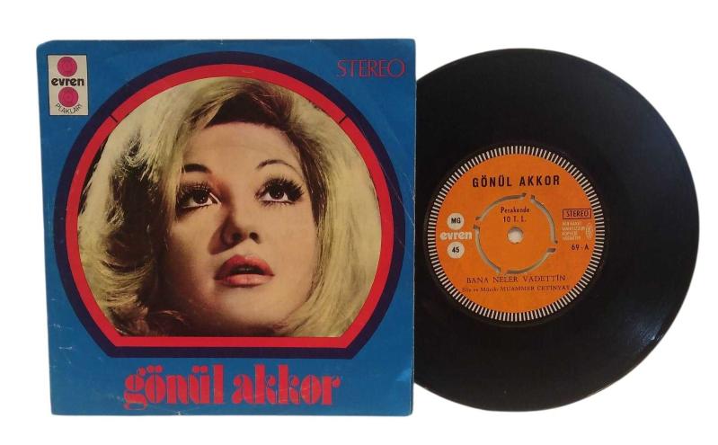 Gönül Akkor - Bana Neler Vaadettin / Aşk Fırtınası 45'Lik Evren Plak (069) Açılır Kapak Plak-Kapak Kondisyonu 10/8 A- Bana Neler Vaadettin B- Aşk Fırtınası