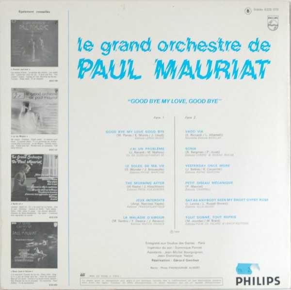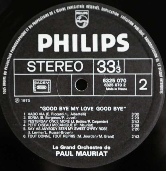 Fotoğraftaki gibi temiz, çok titiz kullanılmış, ilk sahibinden, kütüphane plağı. Le Grand Orchestre De Paul Mauriat – Good Bye My Love, Good Bye Le Grand Orchestre De Paul Mauriat - Good Bye My Love, Good Bye album cover Genre:Jazz, Pop, Folk, World, & Country, Stage & Screen Style:Easy Listening Year:1973