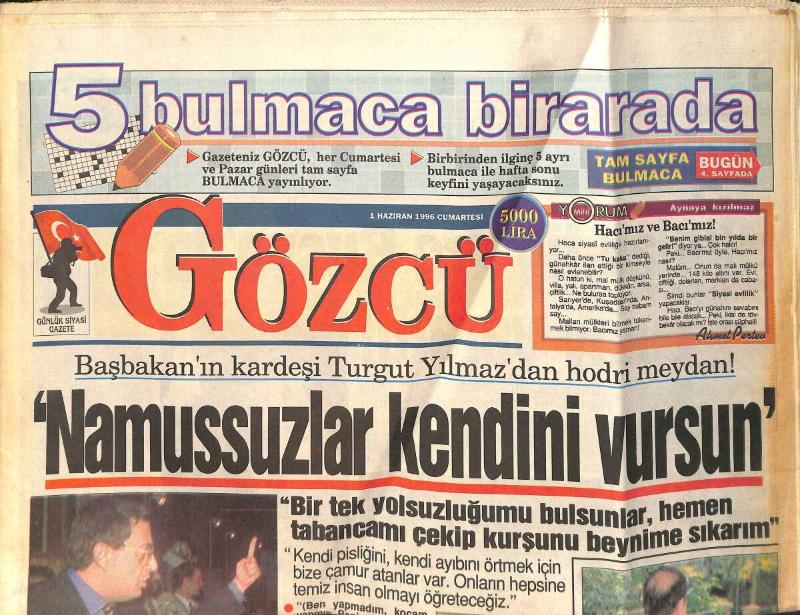 Gözcü Gazetesi 1 Haziran 1996 - Özer Çiller'i Kıskandıran Sahneler - Levent Kırca Şimdi Film Çevirmek İstiyor - Rusya'da Çıplak Tiyatro GZ2576, en son 17 gün önce güncellenmiştir.