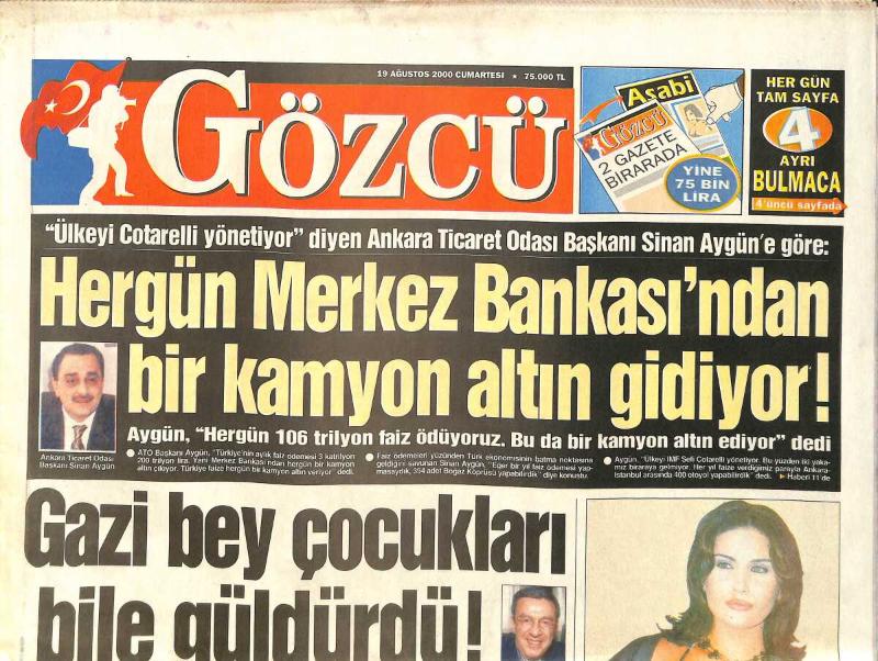 Gözcü Gazetesi 19 Ağustos 2000 - Demet Şener Kira Yerine Öpücük Veriyor - Erbakan'a Sarhoşlar Meclisi Soruşturması GZ2528, en son 18 gün önce güncellenmiştir.