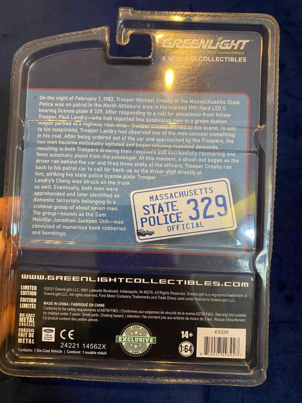 GreenLight Collectibles üretimi, Massachusetts State Police temalı 1981 Ford LTD S diecast model araba, orijinal blister ambalajında ve koleksiyonluk kondisyondadır. Gerçekçi polis detayları, dönemine uygun tasarımı ve lisanslı üretimiyle öne çıkan bu model, polis aracı, Amerikan klasik otomobil ve GreenLight koleksiyonu yapanlar için vitrinlik bir parçadır. Ölçekli diecast koleksiyonunu genişletmek isteyenler için uygun fiyatlı ve tematik bir koleksiyon ürünüdür