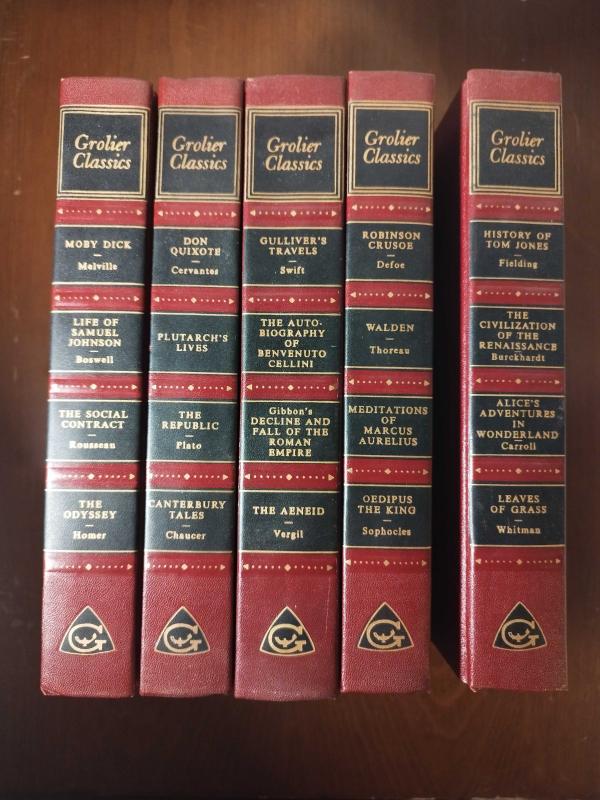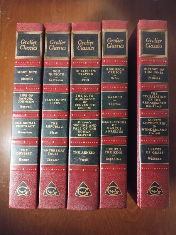 Moby Dick - Melville LIFE OF SAMUEL JOHNSON - BOSWELL THE SOCIAL CONTRACT - ROUSSEAU THE ODYSSEY - HOMER DON QUİXOTE - CERVANTES PLUTARCH'S LIVES THE REPUBLIC - PLATO CANTERBURY TALES CHAUCER GULLİVER'S TRAVELS - SWİFT THE AUTO-BİORAPHY OF BENVENUTO - CELLİNİ GİBBON'S DECLİNE AND FALL OF THE ROMAN EMPIRE THE AWNEID - VERGIL ROBINSON CRUSOE - DEFOE WALDEN - THOREAU MEDITATIONS OF MARCUS AURELIUS OEDIPUS THE KING - SOPHOCHES HIMTORY OF TOM JONES - FIELDING THE CIVILIZATION OF THE RENAISSANCE - BURCKHADT ALICE'S ADVENTURES IN WONDERLAND - CARROL LEAVES OF GRASS - WHITMAN