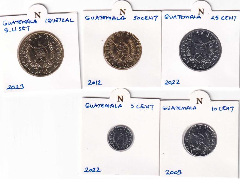 Guatemala Tedavüldeki Madeni Paralar 5 adet Takım Normatif Kapama İçinde