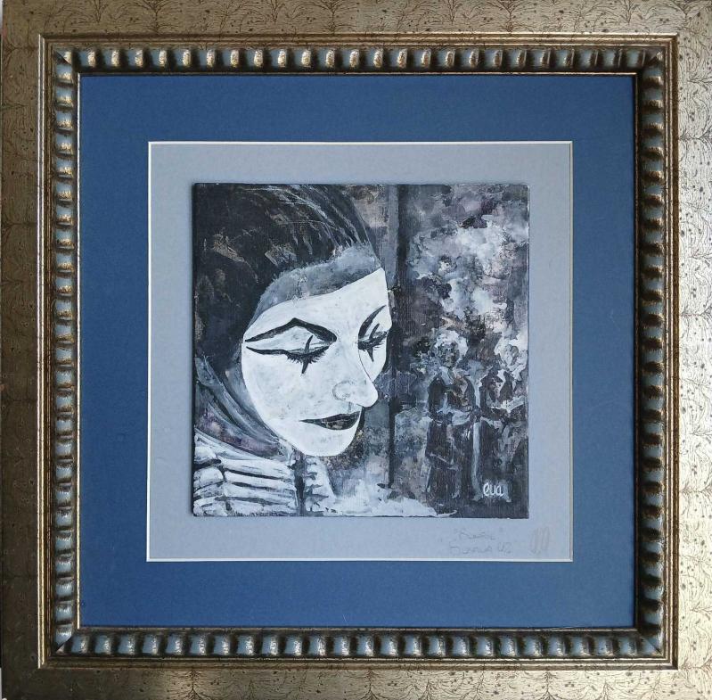 Gülümsemek "Sonrie" Adlı. Pres Tuval Üzeri Akrilik Boya (Karışık Teknik). Susana/EVA 2002 İmzalı. Eser Ölçüsü: 20x20 cm. Çerçevesi-Paspartusu Dahil: 42x42 cm. NOT: Çerçevesi Ahsap Üzeri Alçı Kaplama, Desenli Altın Varak Kaplamadır. (Özel Koleksiyondan..), 6 ay önce kitantik’te satışa sunulmuştur.